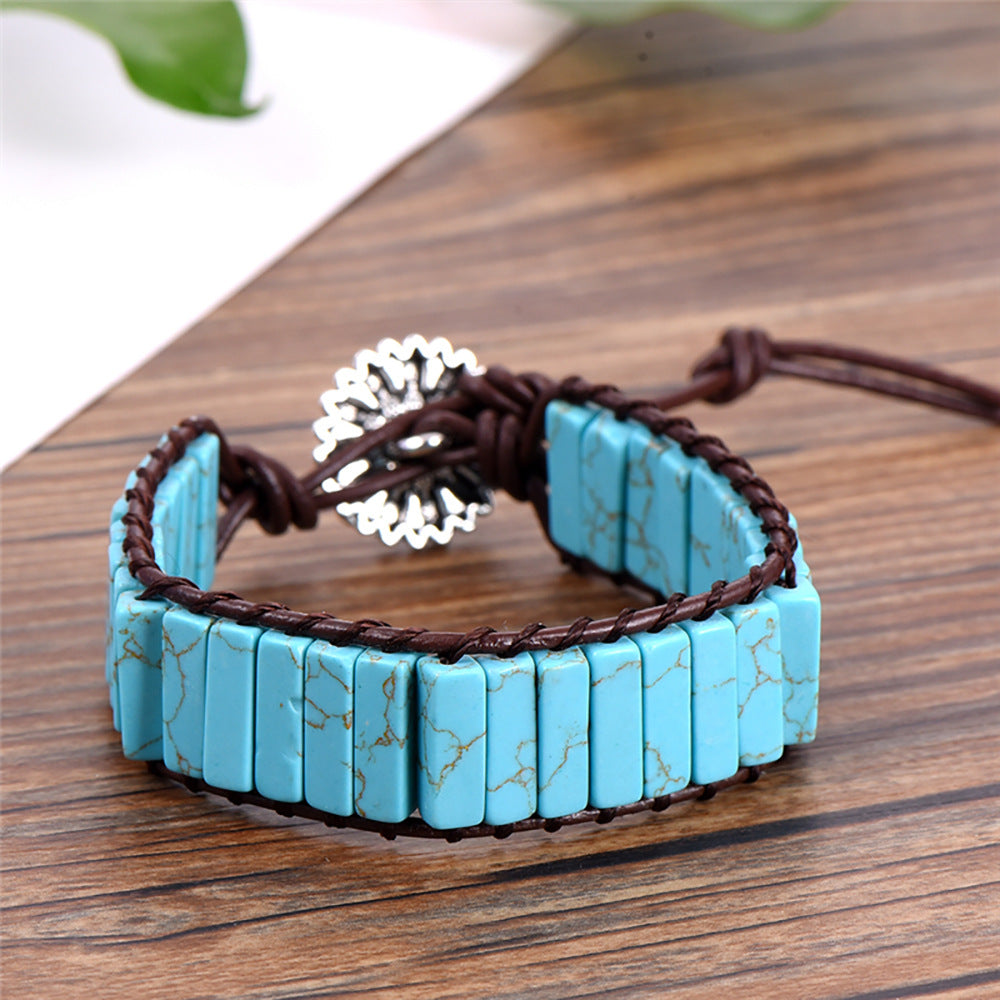Tree Of Life Flower Leather Braided Bracelet Stone Braided Bracelet